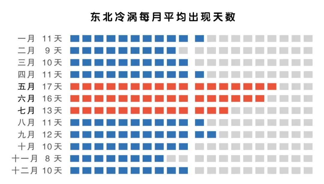 风云卫星看东北冷涡涡旋动图。来源:国家卫星气象中心东北冷涡一年四季均可见,在夏季的活跃度最高,生命周期平均为3至4天,最长可达19天。