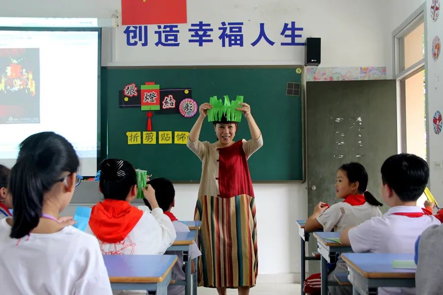 温州民进开明画院副院长、温州市水心小学美术教师戴慧上花灯制作课