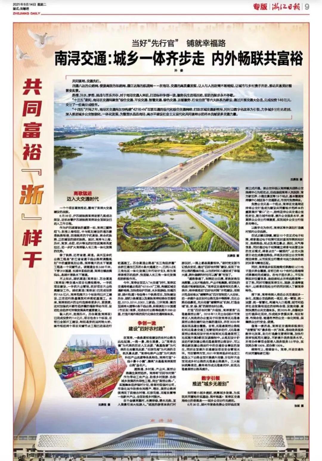 原标题:《今天,《浙江日报》整版关注南浔共同富裕!》