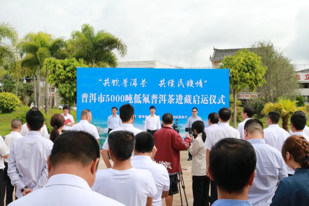 由中共普洱市委、普洱市人民政府和西藏自治区商务厅共同举办的普洱市5000吨低氟普洱茶进藏启运仪式在普洱祖祥高山茶园有限公司举行,正式拉开了云南普洱低氟普洱茶进藏的序幕。普洱市委副书记、市长刘勇出席活动并宣布启运。西藏自治区商务厅副厅长嘎松美郎,普洱市政府副市长白兆林出席活动并分别致辞。