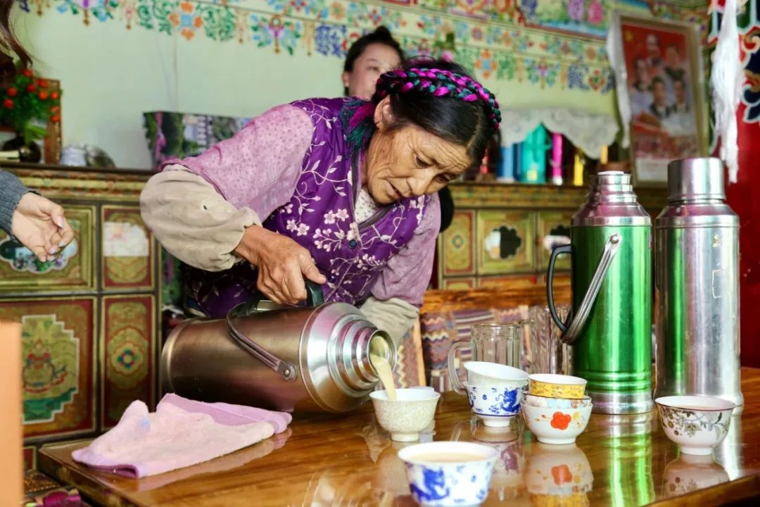 在西藏群众的家中,普洱代表团成员与大家细致交流,了解他们饮茶的喜好。五分钟、十分钟、二十分钟……代表团和当地群众一起反复进行试验用普洱茶制作酥油茶的合适时间,以寻找到最适合他们需要的口感。