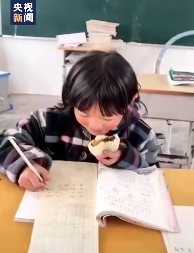 一手拿着包子,一手仍在写字