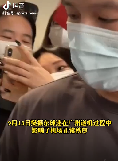 9月13日,樊振东从广州白云机场出发,踏上全运会征程,却遇上了不少粉丝送机,场面一度混乱。