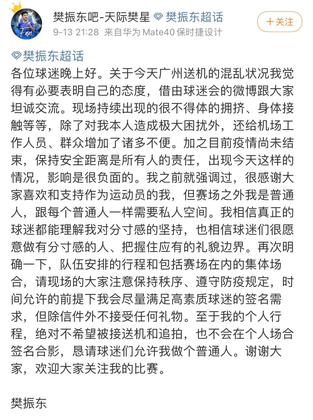 樊振东发声,“现场持续出现的很不得体的拥挤、身体接触等等,除了对我本人造成极大困扰外,还给机场工作人员、群众增加了诸多不便”,“恳请球迷们允许我做个普通人”。