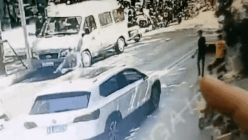 他走向路边停着的一辆宝马车,用枪指着刚在附近店面买东西归来的司机,威胁司机下车。