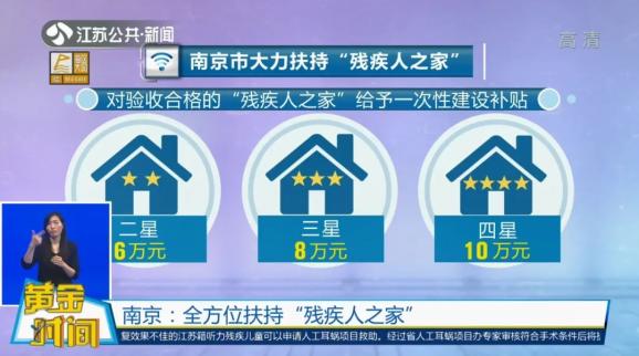 南京市残联党组书记、理事长 朱京芝:在南京的“太阳花残疾人之家”,南京市不断加大对“残疾人之家”的扶持力度:一个是对全市验收合格的“残疾人之家”给予一次性的建设补贴,二星级给6万元,三星级8万元,四星级给10万元。第二个方面是按照“残疾人之家”托养的残疾人数量,给予补贴,日间照料每人每月400元,寄宿制托养每人每月800元。第三个是对全市残疾人托养照料和辅助性就业服务绩效评选中获得优秀单位的“残疾人之家”,给予2至10万元的奖励。第四个是政府通过协调,提供一些公益性的场地。水、电、气各种费用都按照居民生活类的价格给予补贴。