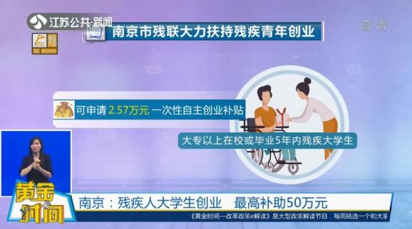 南京市残联对残疾人大学生优秀创业项目进行遴选,项目优秀的给予10-50万元的补助,同时对前景发展比较好的,给予300万的接力投资力度;对在校读书的和毕业五年来的一些残疾人大学生,还可以享受一次性的自主创业补贴,将近26000块钱。
