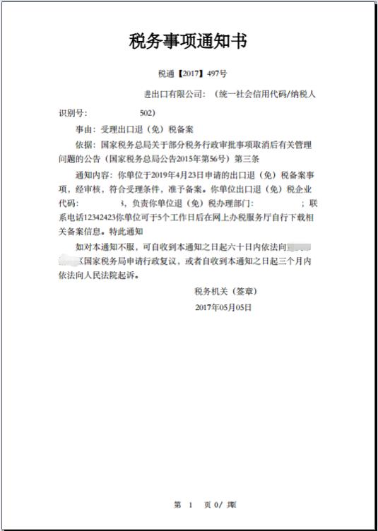 若备案结果为同意的,税务事项通知书样式如下图所示: