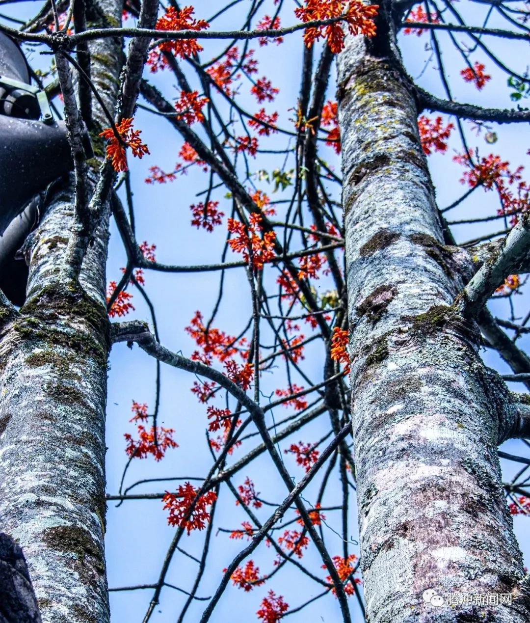 “这是什么植物?为什么开花时无叶……”如此秀美的花不禁触碰到她的心弦,勾出了一连串的疑问。她快步穿梭于附近农户家中,想刨根问底,遗憾的是村民们都不知此树真名,也说不清它的来历,只是说老辈子的先人不知从哪里搞到的种苗,连续几代人都有种植,最早种下的近百年了,祖祖辈辈都叫它“飞松”,也叫“中国红”。张定香实地踏勘后,其中有两株最大,要两个人才能合抱过来,判断树龄应该有八九十年了。后来的日子里,她又发现该乡还有7株较大的、2株稍微小点的“中国红”。