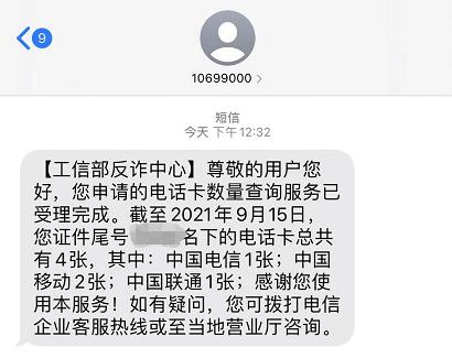服务平台会在48小时内通过“10699000”专用短信端口,告知用户名下所有电话卡数量及其所属的运营企业。