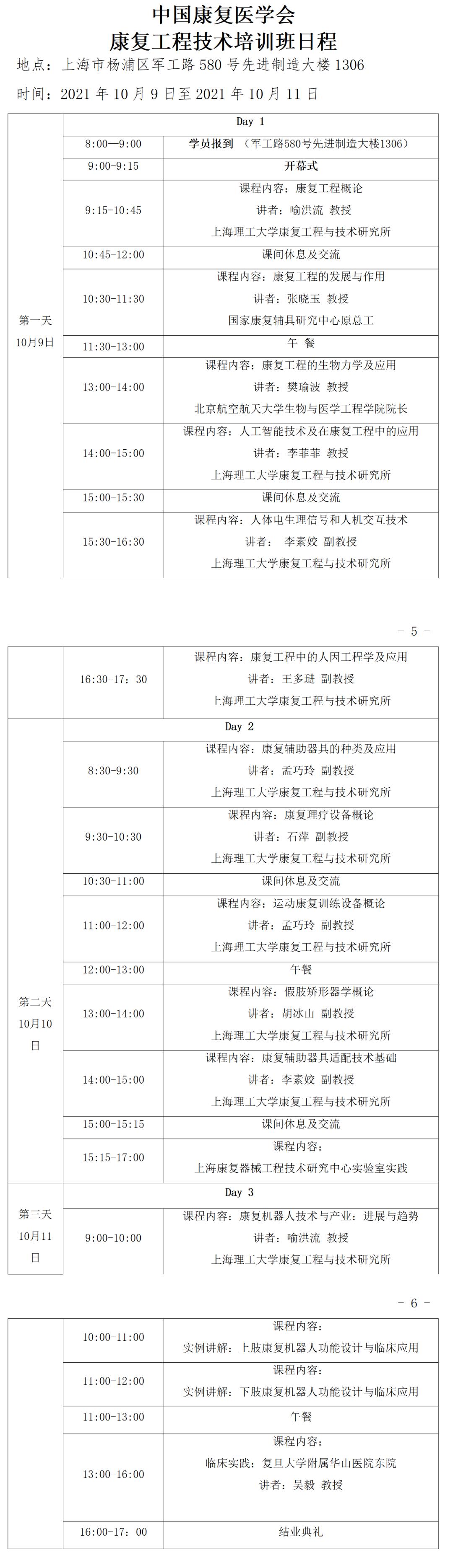 随着国家“十四五规划”开篇和中国康复医疗行业的发展,康复工程面临着发展的机遇。根据中国康复医学会《关于公布中国康复医学会获批2021年国家级继续医学教育新申报项目的通知》(中康发〔2021〕2号)文件精神,由中国康复医学会康复工程与产业促进专业委员会和上海理工大学学医疗器械与食品学院共同主办,上海康复器械工程技术研究中心承办,中国康复辅助器具协会康复器材专业委员会和复旦大学附属华山医院协办的“康复工程技术培训班”暨第五届沪江康复工程讲坛因受疫情防控要求的影响,延期至2021年10月9日—10月11日在上海理工大学举办。