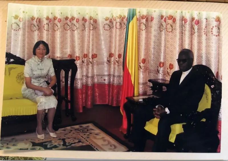图为李蓓芬与贝宁总统克雷库。上观新闻:听说当时你是唯一在西非工作的中国女大使。