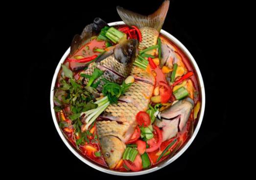 酸汤鱼是苗族特有的美食,距今已有数千年的历史。其入口酸味鲜美,辣劲十足,食用后则让人胃口大开。味道鲜美口感爽滑,无任何腥味,无骨无刺且久煮不老,营养丰富。姊妹饭