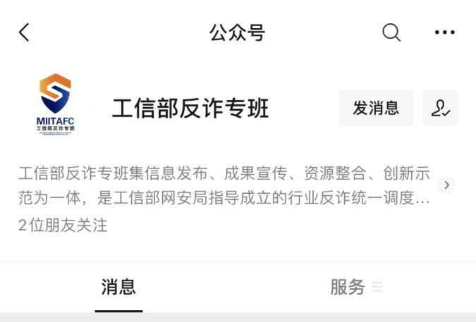 关注“工信部反诈专班”公众号