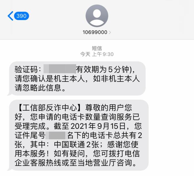 服务平台会在48小时内通过“10699000”专用短信端口,告知用户名下所有电话卡数量及其所属的运营企业。