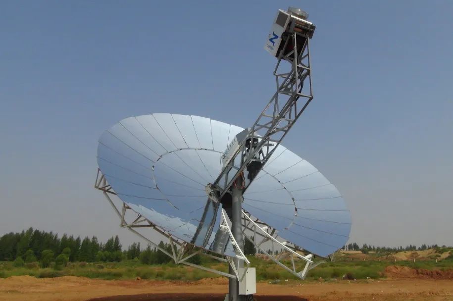 世界上最早出现的太阳能光热发电系统,由许多抛物面反射镜组成,接收在抛物面的焦点上,接收器内的传热介质被加热后,驱动发动机进行发电。碟式系统的聚光比非常高,发电效率较高,对于地面坡度要求也更为灵活。但成本上还缺少优势,技术上也有待于完善。该系统较适用于边远地区独立电站。可以单台使用或多台并联使用,适宜小规模发电。