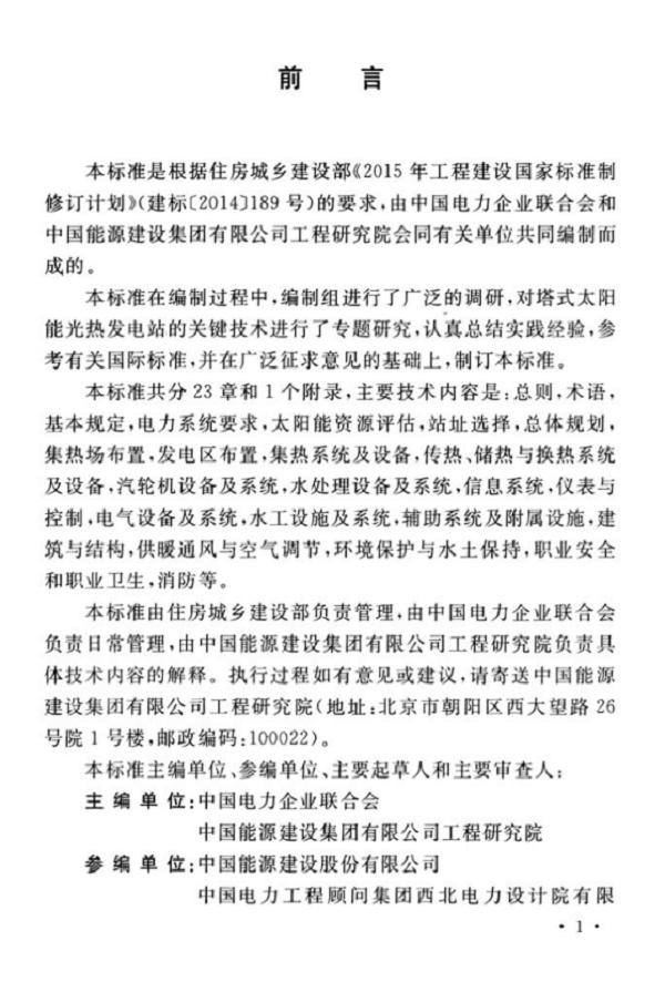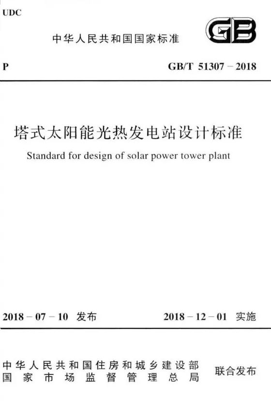 《塔式太阳能光热发电站设计标准》