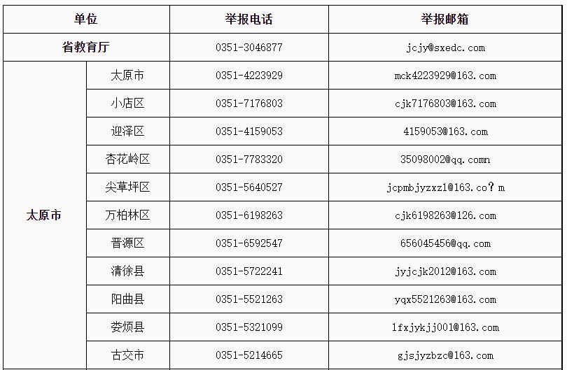 山西省教育厅公布校外培训机构监督举报电话和邮箱