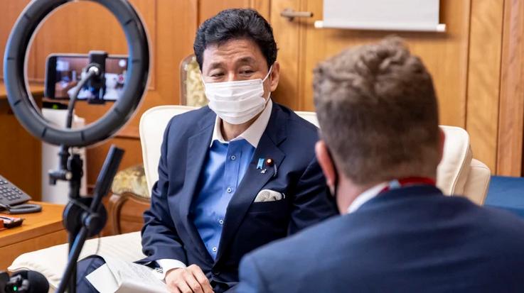 岸信夫在东京接受《悉尼先驱晨报》专访 图自澳媒9月8日,日本副防卫大臣中山泰秀则声称,台湾与日本的距离非常近,就像鼻尖到嘴巴,所以日本会把台湾的和平稳定当作自己的事,不可能当做别人的事。