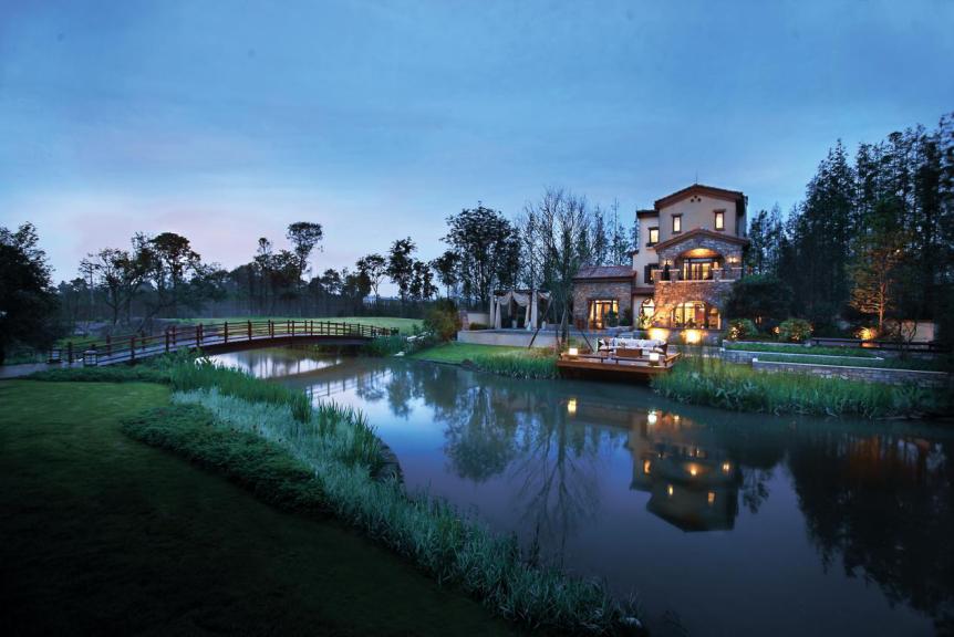 项目概述:1100亩的海航·锦润青城,位于青城山万亩中央森林公园核心位置,两河环绕,享3万㎡香颂湖公园水景,配套温泉酒店、湖滨餐厅,打造全方位国际旅游度假社区。