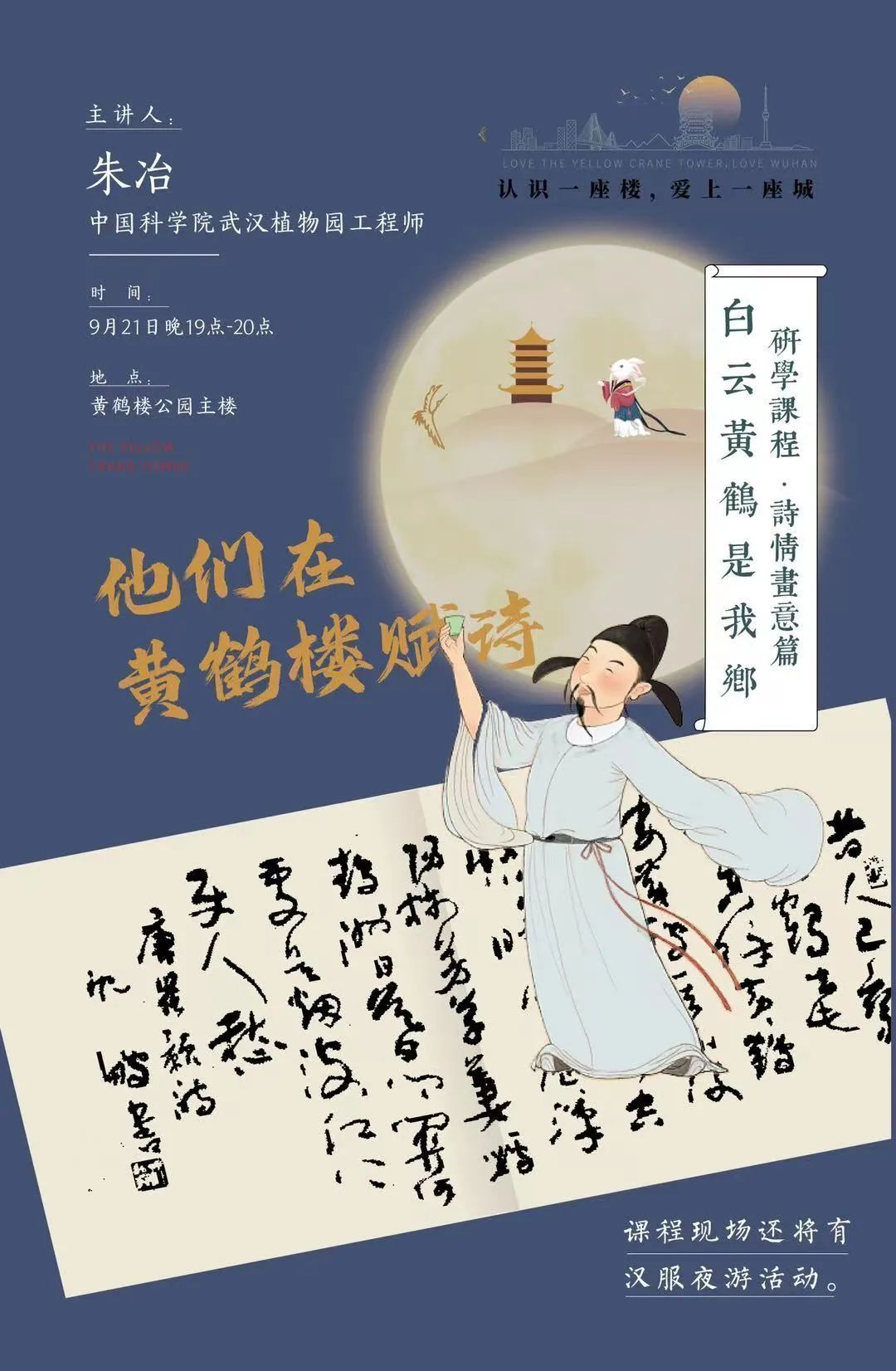 邀请文学专家从“望月”与黄鹤楼引入,讲解诗楼的文学故事。活动将特别引入着汉服、吟古诗、赏花灯为主要内容的传统文化通关登楼游戏环节,可一边吃月饼一边听专家月夜话诗。