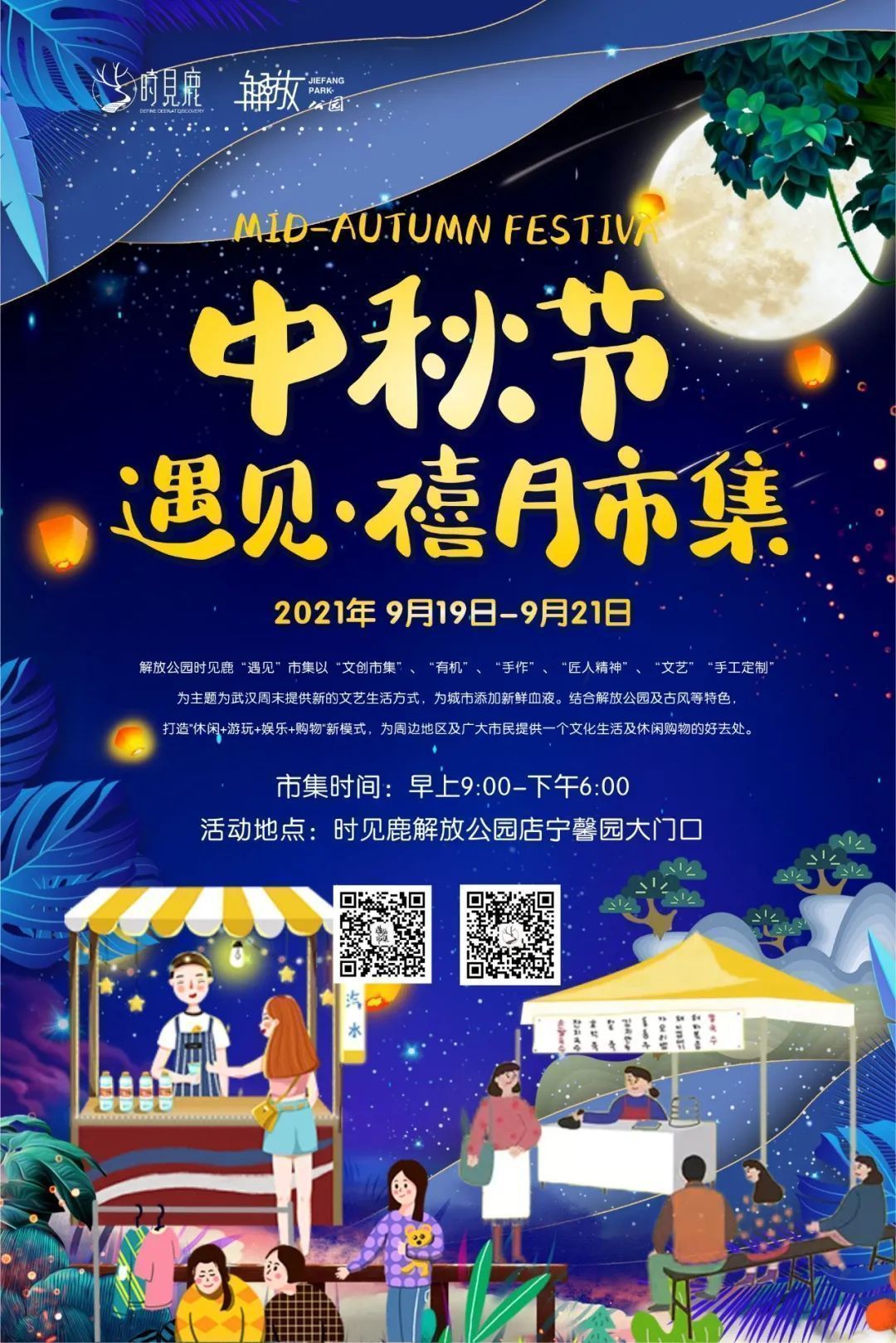 解放公园时见鹿“遇见”市集以“文创市集”、“有机”、“手作”、“匠人精神”、“文艺”“手工定制”为主题,结合解放公园及古风等特色,将在中秋节举办“遇见·禧月市集”。
