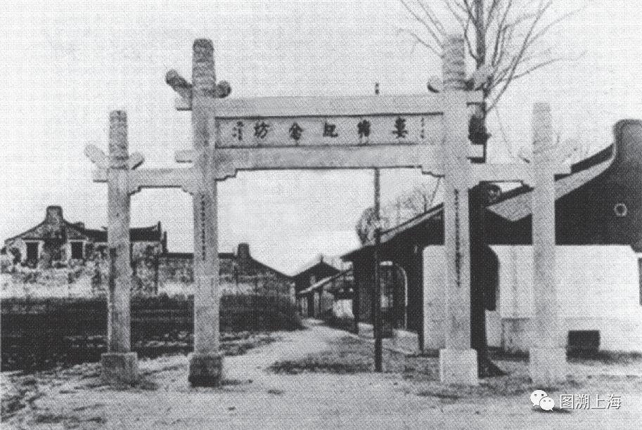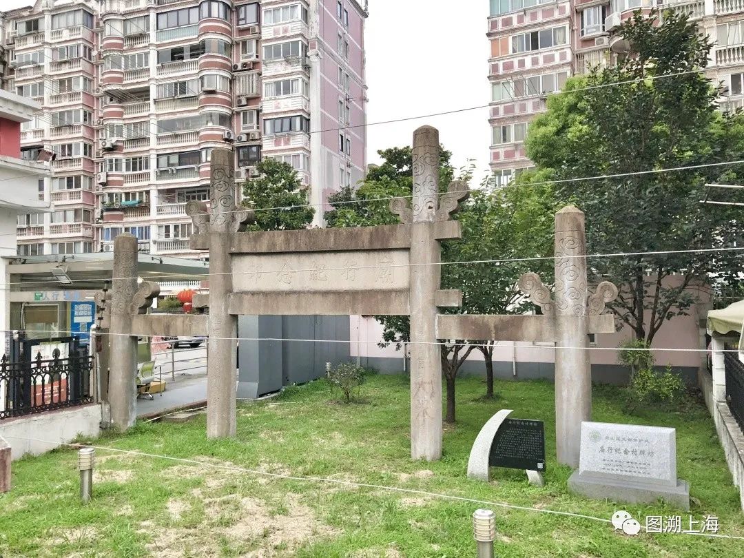 庙行纪念村牌坊今昔在一二八纪念路中段。从这一路名上即可洞悉,一二八纪念路同“一·二八”淞沪抗战相系,足见其在上海历史中的厚重感。一到锦辉绿园居住区(爱辉路28弄)设在一二八纪念路上的边门,但见一座被黑色栏杆和高压拦网围起来的石牌坊,这便是庙行纪念村牌坊。牌坊立柱上“上海市民地方维持会捐”等字样仍清晰可辨。该牌坊仍立在原地,未曾迁移,只是周围被新建筑包围,加之绿化建设,使牌坊显得矮了许多。1937年“八一三”淞沪抗战时,在“一·二八”后建立起来的庙行纪念村被日军几乎全部炸毁,但牌坊能幸存并保留至今,颇为不易。