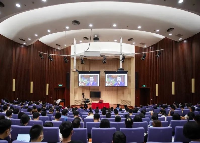 赠书仪式赠书仪式后,陈煜波为全体新生讲授主题党课。他首先对百年未有之大变局做出解读。一方面,面临前所未有的科技革命、产业变革和中国作为新兴大国崛起的历史机遇,同学们生逢盛世。另一方面,后疫情时代的逆全球化和去中国化等带来重大影响,时代对人才培养提出了更高要求,创新人才的培养成为重中之重。他鼓励同学们坚持创新精神和独立思考能力,将来努力成为各行各业的领军人才。