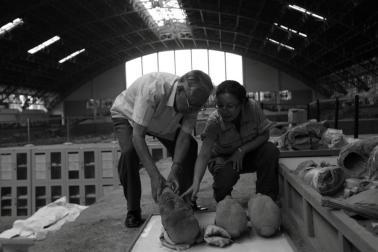 在这一方面老工人们的技术过硬,端起左臂残片,脑子里马上反应右臂在哪个位置见过。“这是XX号的手指”,“这是XX号的脖子”,残片断茬一碰,八九不离十。拼图也需真功夫,没有三五年的实践,难练就。
