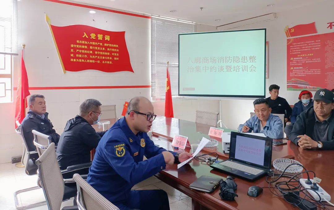 八廓商场地处拉萨八廓街商圈核心区域,是古城拉萨代表性特色旅游商品的集散地,设有经营摊位200多个,但铺与铺间几乎是“无缝连接”的,整个市场被各种式样密密麻麻的商品占满,普遍存在“占道经营”、堵塞疏散通道、楼梯间内堆放杂物等“老大难问题”,为全面整治梳理八廓商场消防通道,为“生命通道”护航,助力消防安全专项整治三年行动工作。9月15日下午,拉萨消防救援支队联合市商务局、市公安局召开八廓商场火灾隐患整治集中约谈会暨培训会,专门邀请拉萨电视台等新闻媒体跟踪报道,强化疏散通道集中整治,推动整改落实。八廓商场全体商铺负责人共计100余人参加会议。