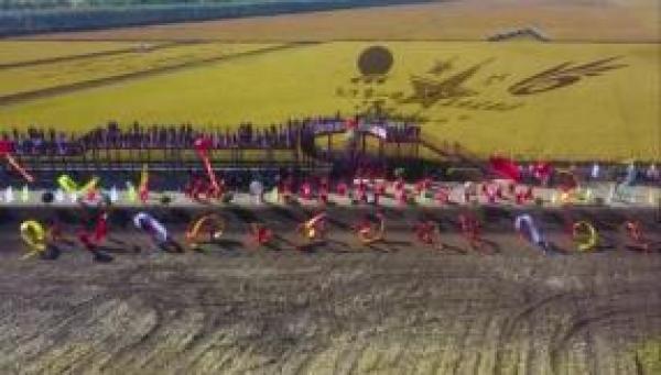 在巡礼中,通过庆丰收·秧歌队表演、颂党恩·手鼓舞献礼表演和启新程·威风锣鼓舞龙表演,充分展现了新时代北大荒人热情好客的风采、体现了积极向上的风貌。北大荒农垦集团有限公司党委副书记、副董事长、总经理杨宝龙宣布“庆丰收巡礼仪式”开始。9台玉米收割机以“雁阵”的形式启动推进,7台东方红大马力拖拉机紧随其后进行整地作业。3架“M18”农用飞机机尾喷洒水雾,迅速从空中飞驰而过,驶向水田收获现场盘旋一圈。西侧5台水田收获机和南侧9台水田收获机齐头并进,随后,东侧2台无人驾驶水田收割机进行收割作业展示。2架遥感无人机和8架植保无人机机型组编在半空中进行了飞行表演,组成的“庆丰收巡礼仪仗队”,充分展示了北大荒的丰收盛景,展示了中国农业现代化的建设成果,展示了北大荒人忠诚国家、敢于担当、无私奉献的豪迈情怀,展示了祖国第一个百年奋斗目标实现壮举,积极为即将到来的第四个中国农民丰收节献礼。