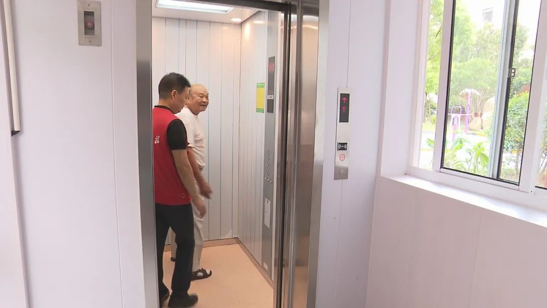 “我开过刀的,心脏换过瓣膜,气不够用,我确实需要这部电梯,正好有这个政策,我举双手赞成。现在我就方便了,电梯造好,我乘到三楼半,下去走8格扶梯就到家里了,上下很方便了,买个菜买个西瓜里面一放……”,王老伯说,以前自己从一楼到自己家里三楼,当中要休息一趟,气不够用,再到家里,现在轻轻松松。