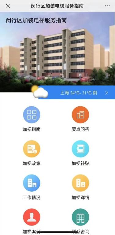 步骤3:点击进入“闵行区加装电梯服务指南”,即可获取各类线上加装电梯服务。如有问题,也可线上咨询哦~
