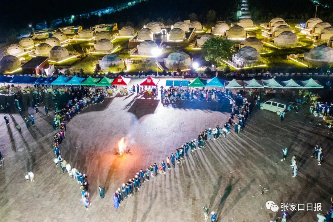 坝上草原进入旅游旺季盛夏时节,我市坝上草原的醉人美景正吸引着众多游客前来避暑游玩,坝上草原旅游全面进入旺季。图为游客在察北管理区桃源山庄参加篝火晚会领略草原风情。 陈亮 辛海成 摄