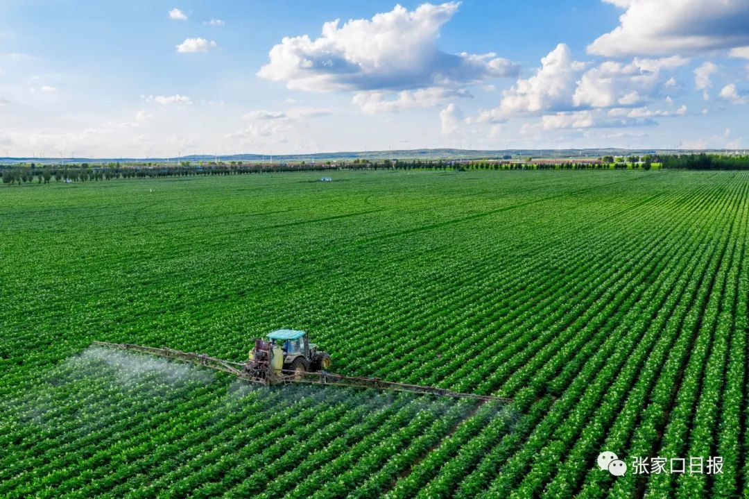 时至盛夏,察北管理区雪川农业通过科学规范化种植、精细化管理,种植基地的马铃薯花开正茂,长势喜人。目前,该企业拥有18万亩自营机械化现代农场、3座马铃薯仓储物流及精深加工产业园,年繁育各等级种薯15万吨,年加工马铃薯30万吨,带动农民增收42亿元以上。陈亮 辛海成 摄阳 原