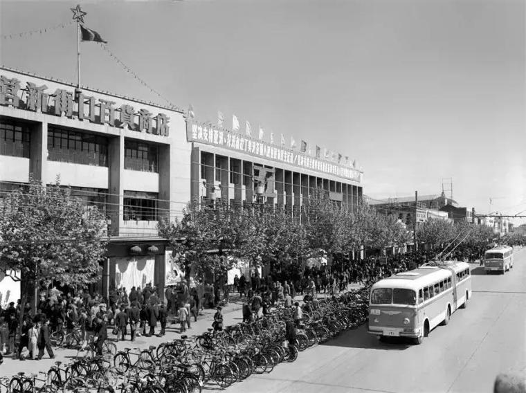 民国时期繁华的南京新街口1952年,中国百货公司南京市公司新街口门市部(新街口百货商店,即新百)开业,是华东地区第一家大型国营零售商店。