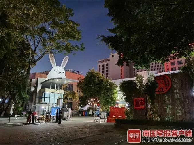 ▲广西图书馆外空降一只“玉兔”,引来不少市民观赏、拍照。广西图书馆供图广西图书馆的官方微博、微信公众号在9日21日前,将同步开展抽奖活动。读者有机会获得《中国神话传说》《中国神话史》等图书。