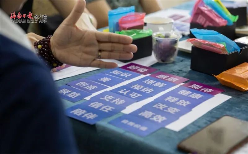 “虽然有人觉得,心理教师的地位有些尴尬,不如语数外等主科老师受到重视,但我一直坚信,心理教师是太阳底下最光辉的职业。”海南师范大学附属中学原心理教师李惠君举起“感恩”“意义”“真诚”等卡片,“这些年,我一直坚持每天发表一篇‘今天的最美遇见’,就是想把美好积极的事物分享出来,给我的学生们送去温暖、送去滋养、送去力量。”大家敞开心扉,现场有笑有泪——有人举起“感恩”卡片,含泪向同事和学生致谢;有人举起“告别”卡片,决定挥别曾经“疲惫不堪”“犹豫不决”的自己;有人举起“期待”卡片,坚信“我和学生都会一天比一天过得更好”……