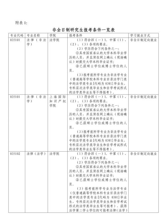 (3)报考“知识产权(世界知识产权组织WIPO项目,全英文课程)”的考生,报名时先选择上海国际知识产权学院(学院代码:320)法学(专业代码:030100),至复试阶段再申请知识产权(WIPO项目)班。