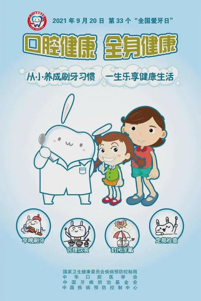 2021年9月20日是第33个“全国爱牙日”,今年的宣传主题是“口腔健康 全身健康”——从小养成刷牙习惯 一生乐享健康生活。