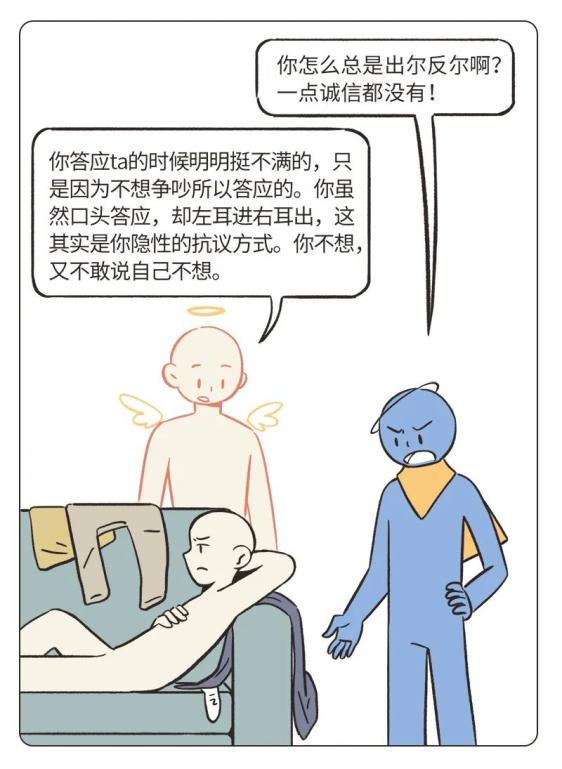 Ta既不否定这些观察,也不为自己的行为找什么借口,而是全盘承认ta看见的现象。接着,ta开始观察自己伴侣的反应,只当伴侣是在恋爱关系中发牢骚的人,而不将ta看作自己的伴侣。