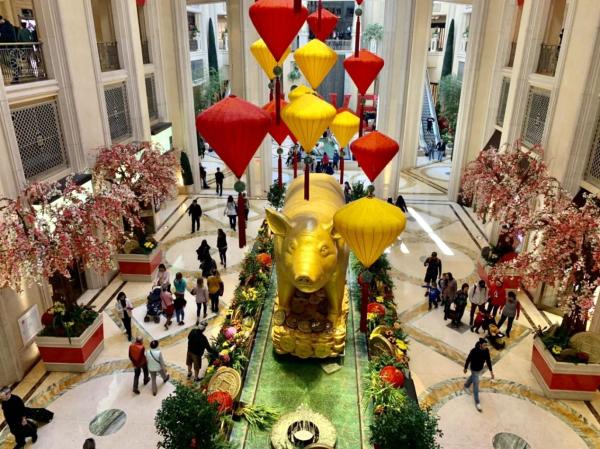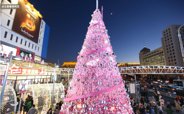 符号作为节庆内涵的集中反映,是人们感知传统节庆财产化和全球化最直接的方式。这些符号通常以食品、物品或祝福语等形式呈现,例如感恩节的“火鸡”、圣诞节的“圣诞树”、春节的“福”字和中秋节的“月饼”,等等。以节庆符号为核心,节庆空间得以营造,使“天涯若比邻”成为可能。图3和图4分别呈现了2018年拉斯维加斯春节期间的景象和2017年北京圣诞节期间的景象。无论是随处可见的中文字符和生肖意象,还是混融的广告牌和闪耀的圣诞树,都不禁令人感叹节庆所构建的“地球村”。