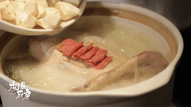 17:10别忘记还炖着一锅汤呢!芋艿改刀成滚刀块,加入汤里再煮15分钟。
