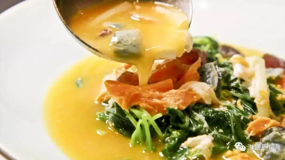吃得差不多了,再做一个简单的素菜。之前留下的鸡汤派上用场了!具体的做法点击图片获取,共耗时10分钟。