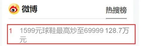 钩子一反,倾家荡产?昨天,话题#1599元球鞋最高炒至69999元#登上微博热搜第一。