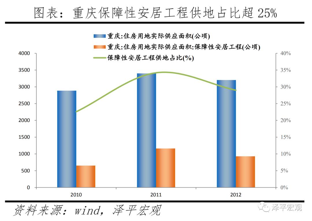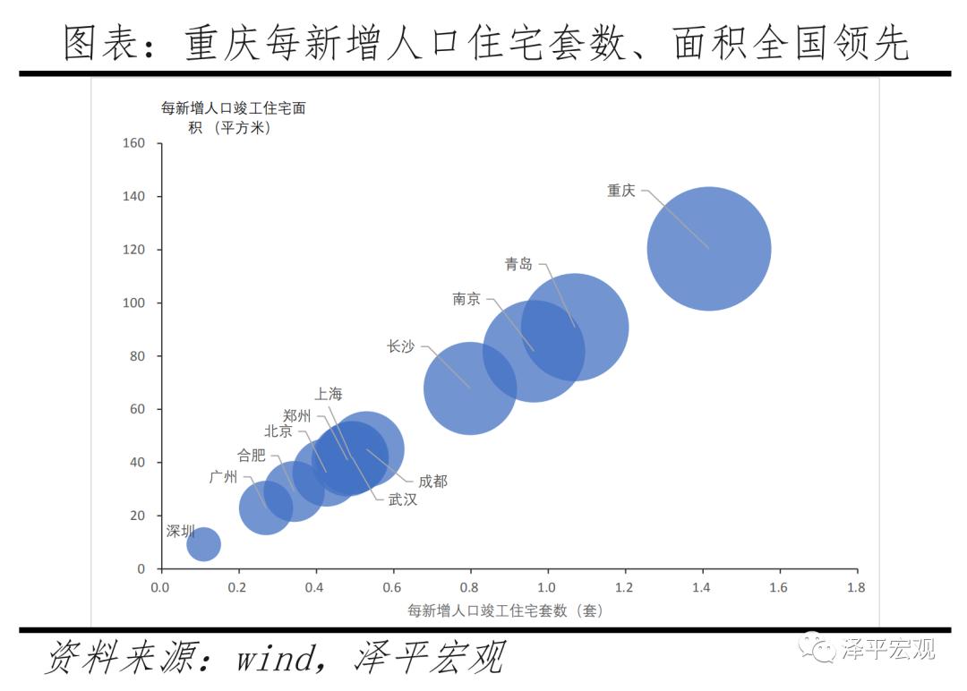 4)将房地产建设与人口变化相关联,保持人均住宅面积约30平米。重庆保障性住房建设起步早,开创“重庆模式”公租房制度,建立市场供给与政府保障并举的“双轨制”体系;