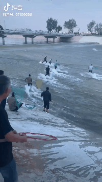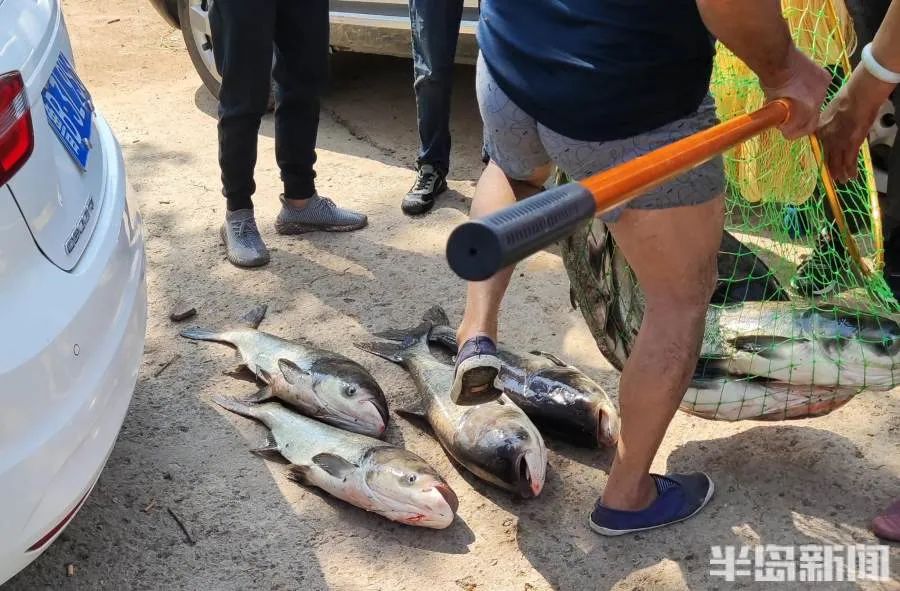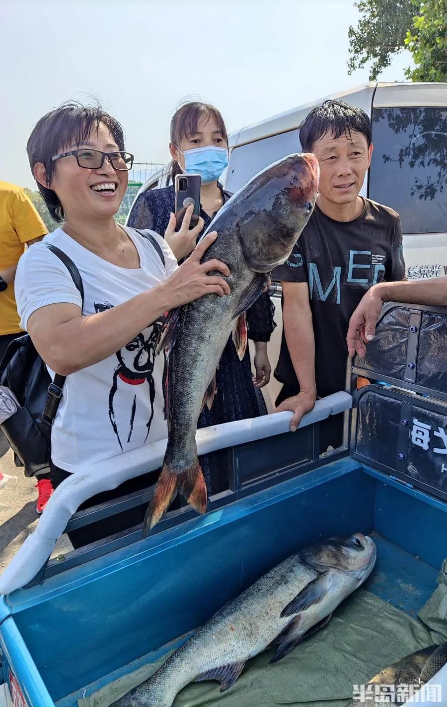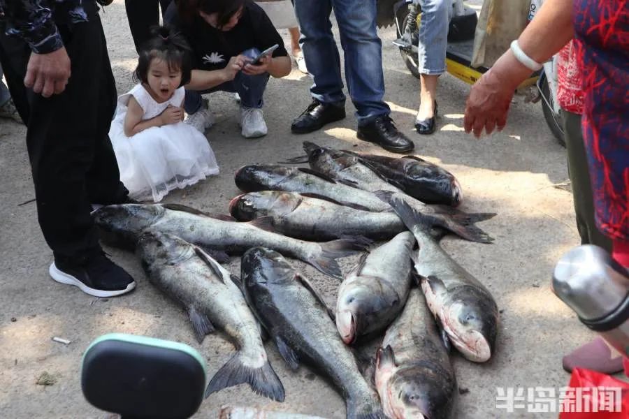 看着活蹦乱跳的大鱼河道里顿时热闹起来