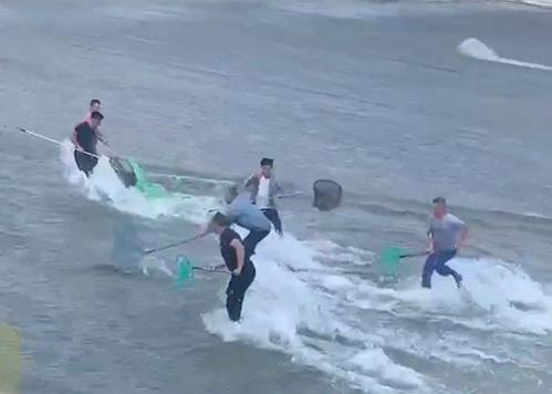 一帮老爷们扛着渔网跑出了苏炳添的速度