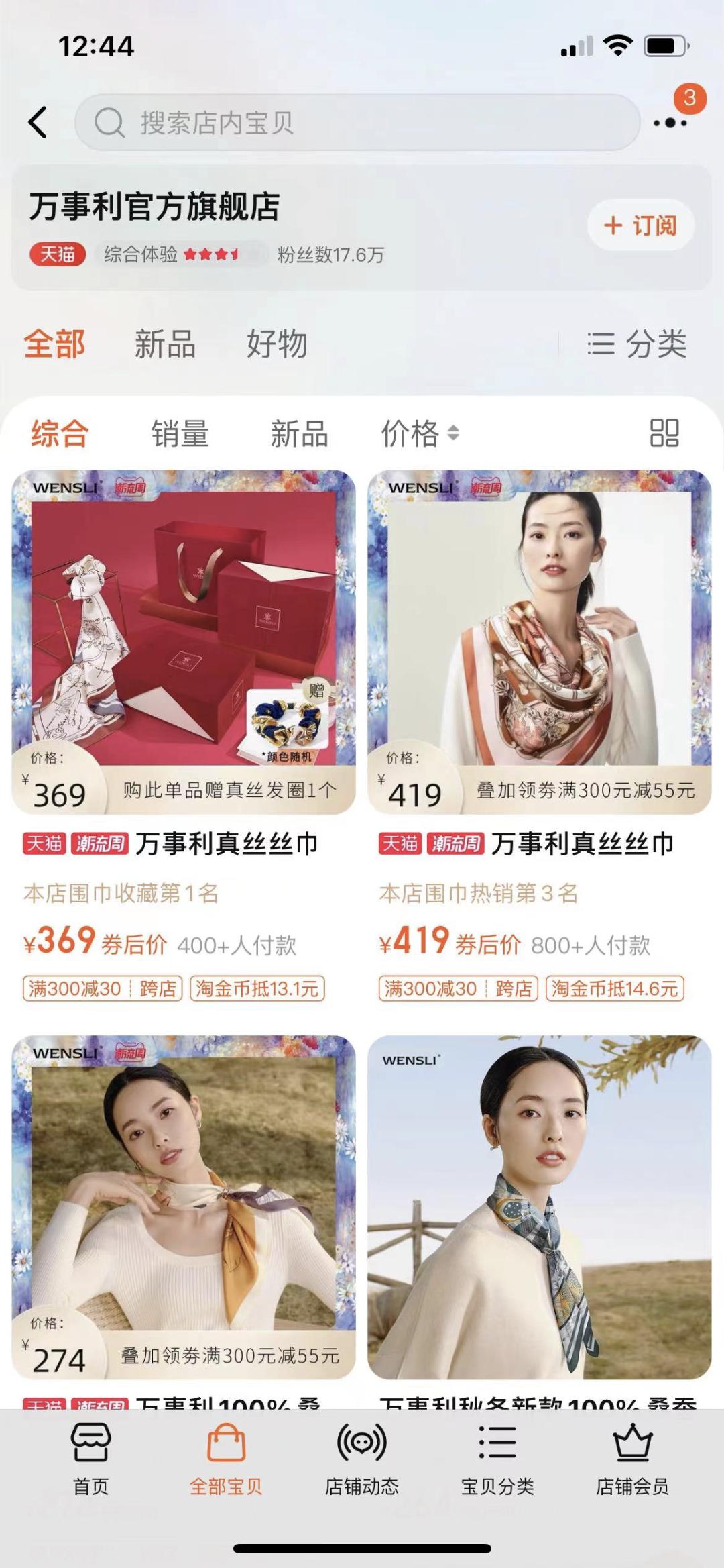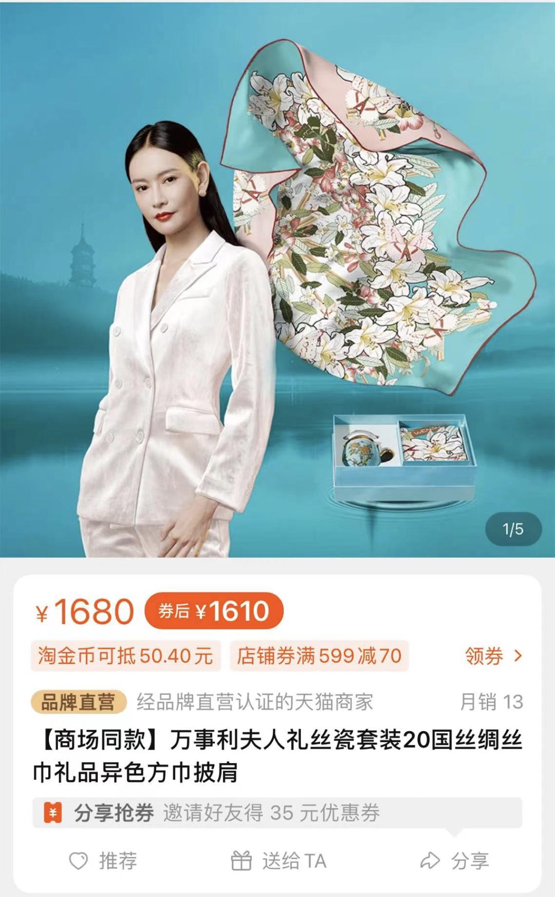 当电商业务已经成为品牌收入的重要组成部分时,万事利几个线上渠道贡献的销售额,只占公司整体的5%。其中贡献了最多交易额的天猫旗舰店,这家“十年老店”,17万粉丝,在2020年度贡献了1912万元收入。