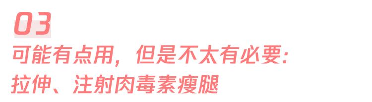 像网上盛传的拉伸瘦腿教学那样只做各种拉伸,甚至拉得腿越痛觉得越有效的办法,是绝对不能瘦腿的,不正确的拉伸反而还可能伤害到肌肉或者韧带。
